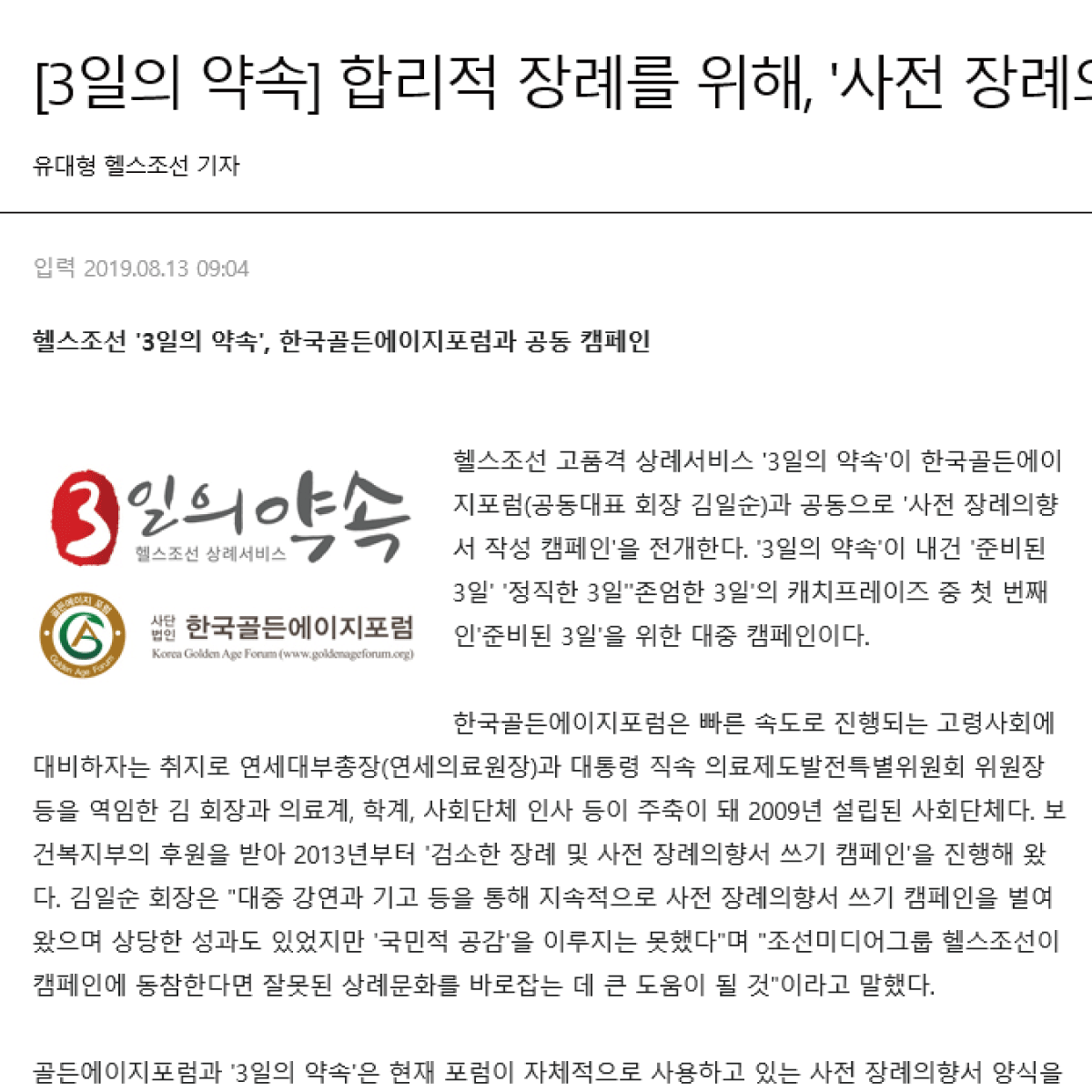 | 3일의 약속 언론홍보 |