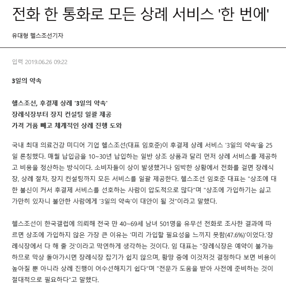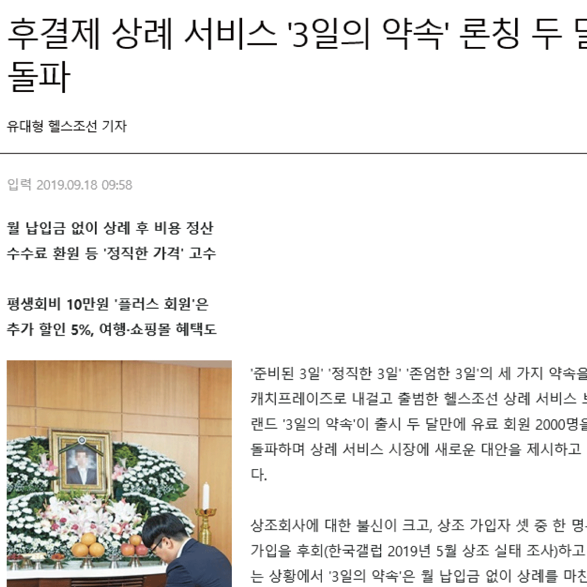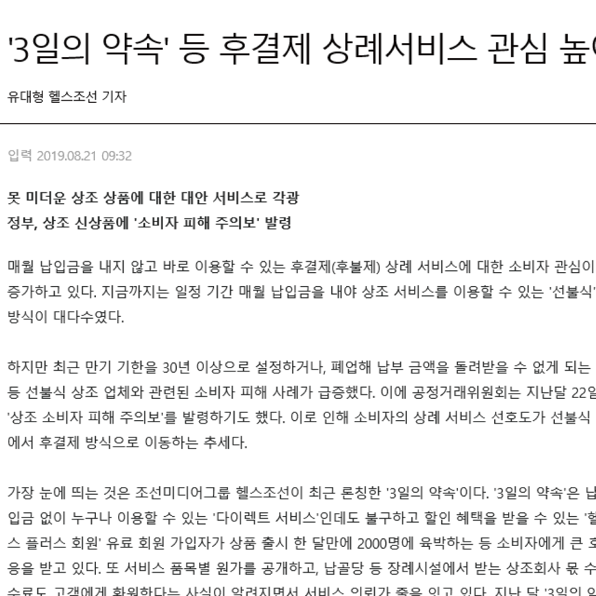 | 기존 상조의 문제점을 개선한 후결제 맞춤 상례서비스 3일의 약속 |