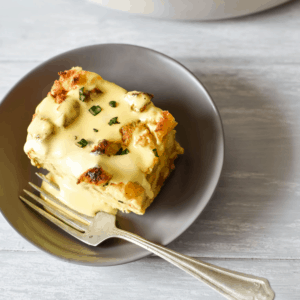 | Christmas morning breakfast casserole with hollandaise sauce |