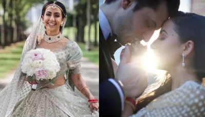| This nrı bride created a new colour trend by donning a tea-green sabyasachi lehenga for her wedding (2) |