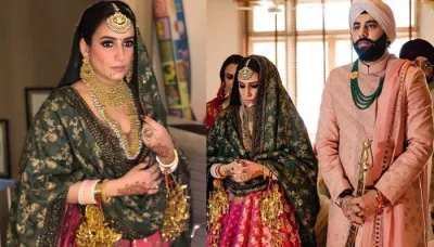 | Sabyasachi bride glams up her anand karaj wedding ın a bi-coloured benarasi lehenga-choli (2) |