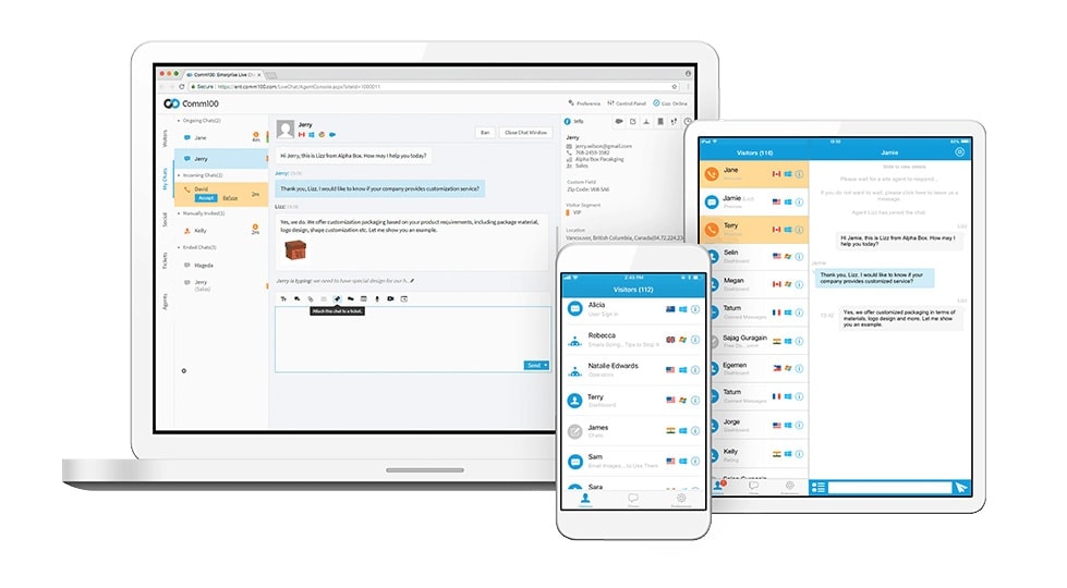 Comm100 is an award-winning omnichannel customer experience platform encompassing live chat, ticketing, KB, chatbot, and social media. Try it free!