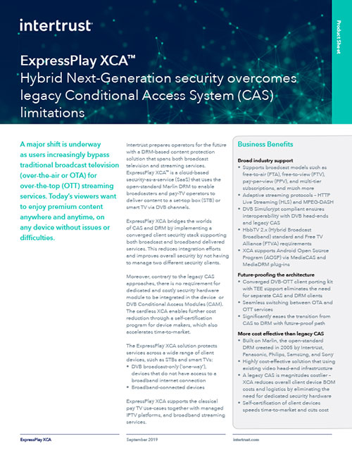 | A major shift is underway as users increasingly bypass traditional broadcast tv for “ott” streaming services. ıntertrust prepares operators for this inevitable trend with a single content security solution spanning broadcast andstreamingservices. |