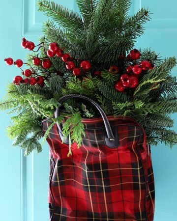 | Upcycled plaid christmas door hanger |