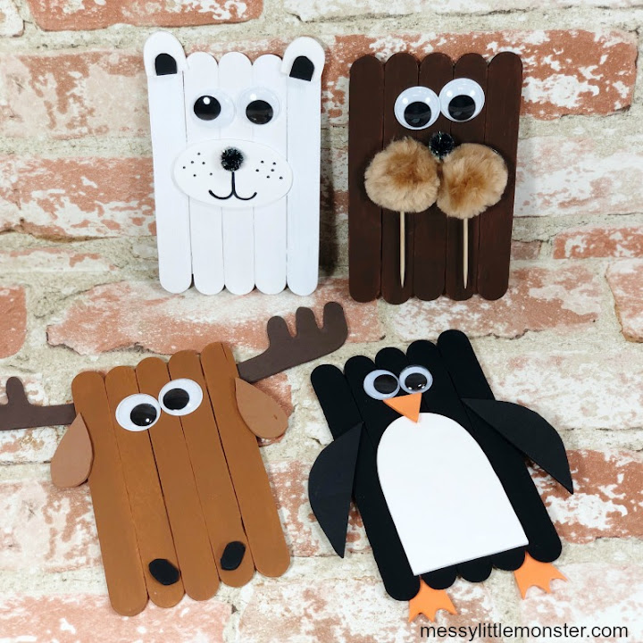| Popsicle stick arctic animal crafts |