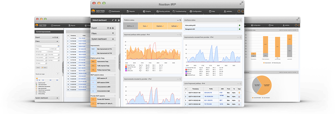 Noction IRP (Intelligent Routing Platform) is designed to reduce network congestion and outages, prevent packet loss and minimize latency.