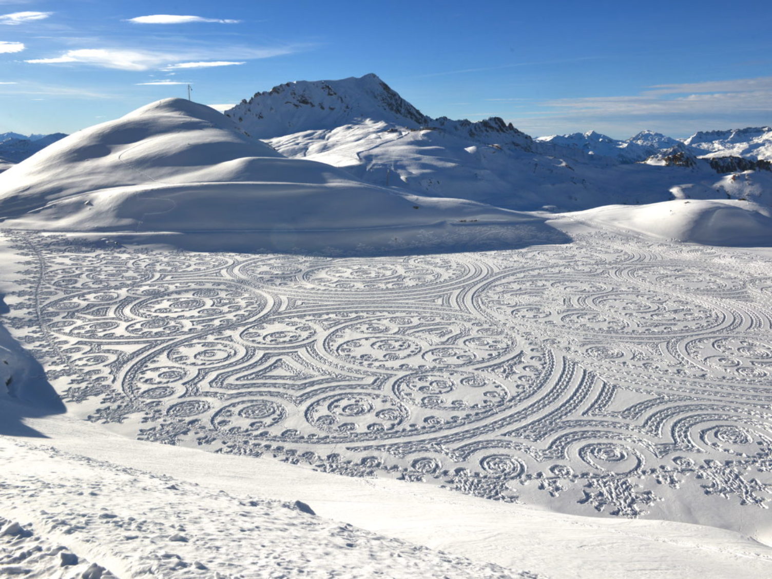 | This artist uses snowshoes to carve massive, ephemeral artworks into the snow |