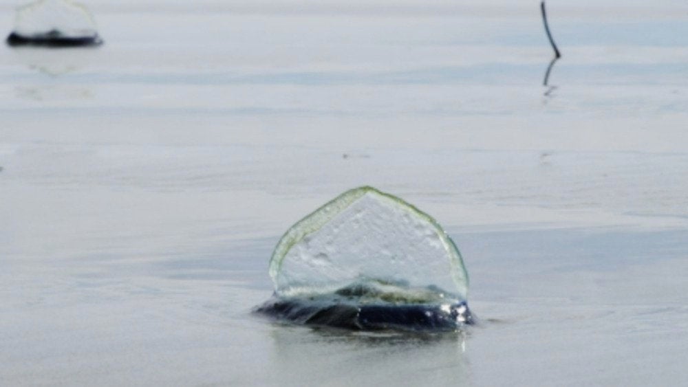 | Beach covered in purple jellyfish |